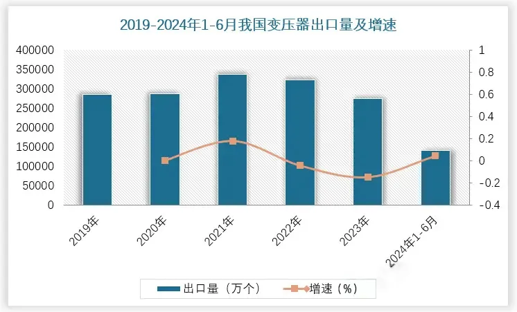據(jù)統(tǒng)計,2019-2023年我國變壓器出口量均超25億個,其中2021年、2022年變壓器出口量均突破30億個,2024年上半年已達14億個,較2023年同期增長4.3%。